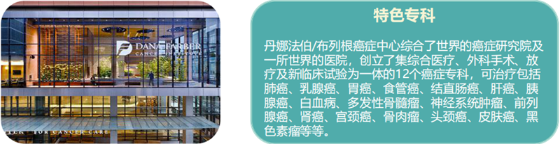 Dana-Farber Cancer Institute is located in Boston, Massachusetts. It was established in 1947. It is a cancer affiliated hospital of Harvard Medical School, a comprehensive cancer treatment center and an AIDS research center designated by the federal government. recipient of the Bell Prize in Medicine. Since its establishment, it has been providing cancer patients with advanced research to improve the understanding, diagnosis, treatment and prevention of cancer and related diseases.